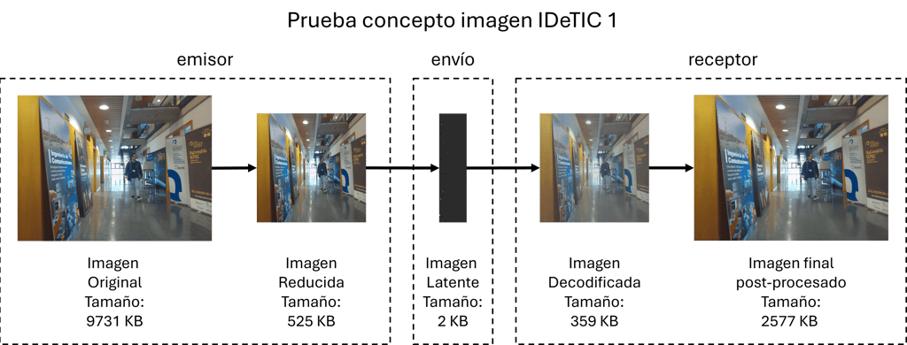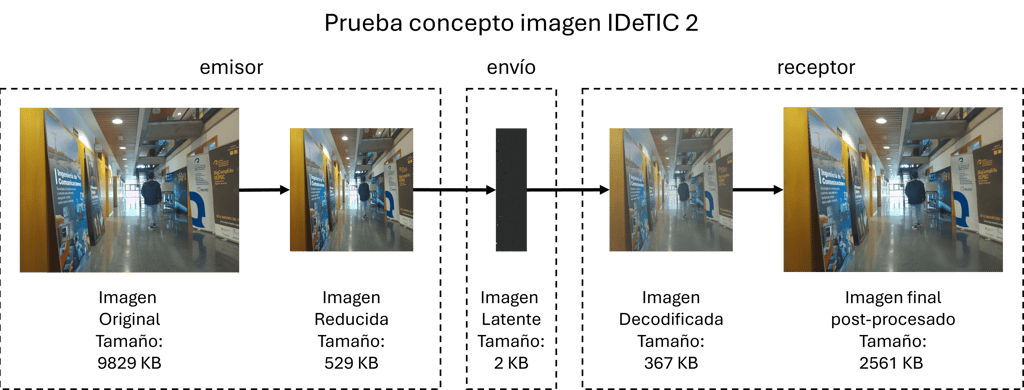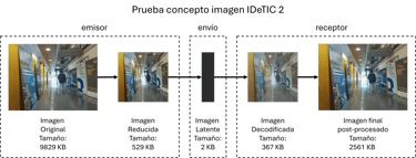 El protocolo verifica el ciclo completo del sistema: desde la captura de imágenes/vídeos y codificación en el origen, hasta la transmisión de datos latentes y su reconstrucción final mediante algoritmos de superresolución