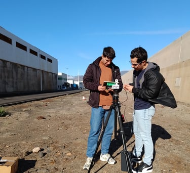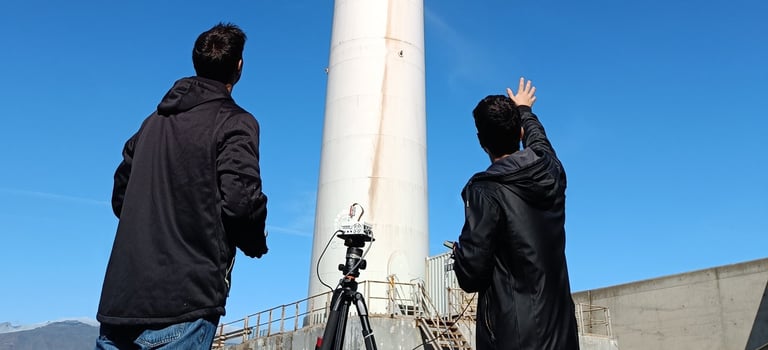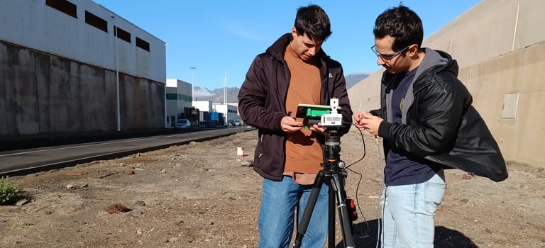 La prueba se llevó a cabo en la zona de operaciones/explanada del Puerto de Arinaga, seleccionando un punto con línea de visión directa hacia el aerogenerador situado en el recinto portuario. Este entorno presenta desafíos reales de operación: viento, condiciones de iluminación variables y distancia física respecto al centro de procesamiento de datos.