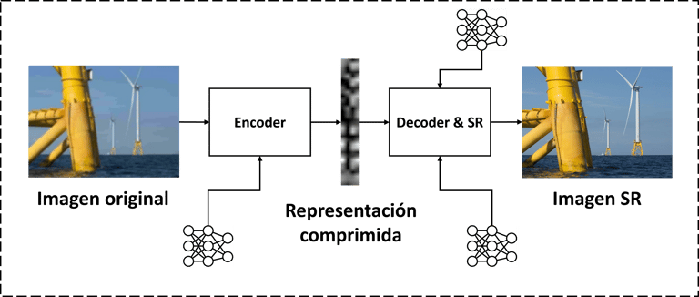Mejora en la nube: al recibir los datos, la IA aplica superresolución para reconstruir y mejorar la calidad.
